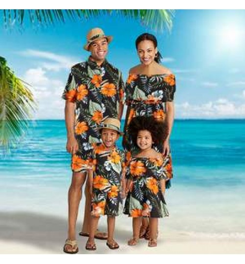 B204065 Vacation travel family outfit family matching shirt suit dress father and son Mum daughter matching outfits