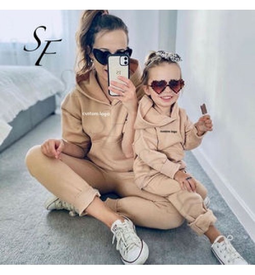 Casual Style Pure Pocket Hoodie Pants Sets Mom And Me Clothes Matching Mother And Daughter Outfits Family Matching Outfits