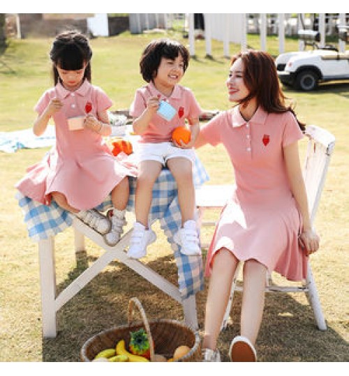 • 2022 Fashionable Pink Parent-child Outfit Mommy Dress And Me Outfits Summer Family Matching Outfits
