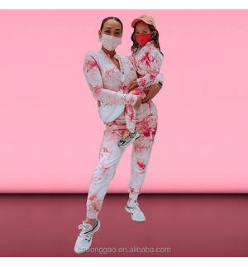 Fall mommy and Me Outfits Tie Dye Hoodie 2pcs Long Pants Sets Family Matching Set Women Hoodies Two Piece Sets