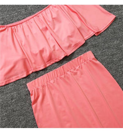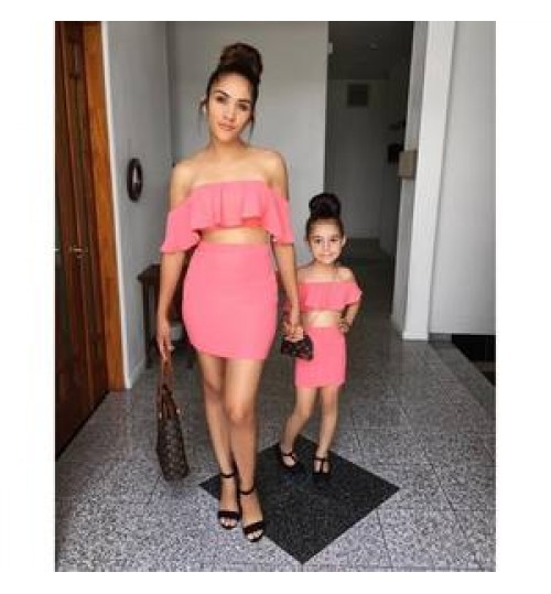 Family Matching Outfits Summer Ruffle Tops Off Shoulder T-shirt Skirt Dress Set For Mother And Me Family Matching Clothes