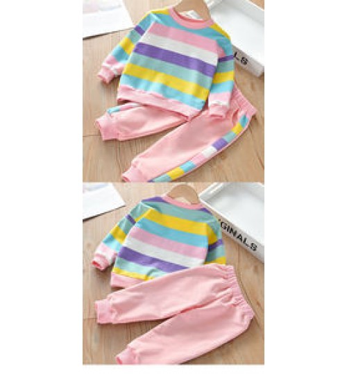 Girls Clothing Back To School 10Yrs Girls 2 Pieces Sets Daily Wear Child Clothing For Autumn Striped Colorful Rainbow