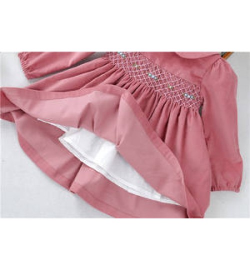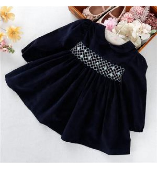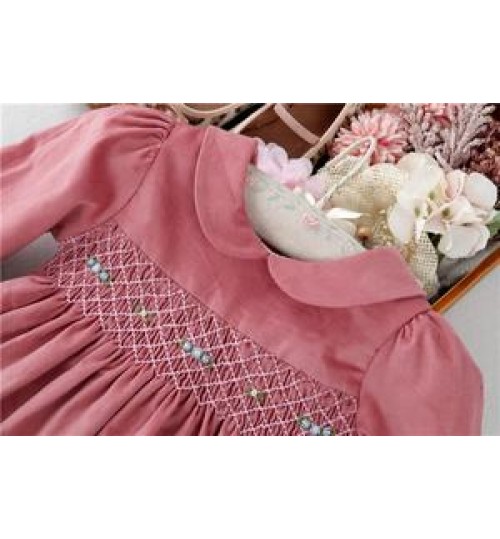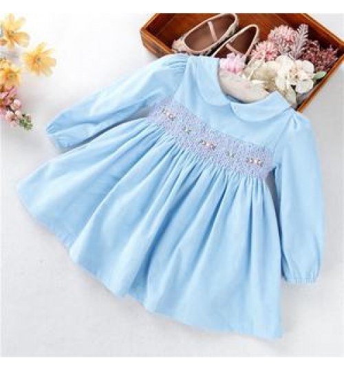 Girls Baby Girl Smocked Dresses C20729 Winter Corduroy Little Baby Dresses For Girls Smocked Hand Made Blue Pink Outfit Kids Children Clothes Wholesale Bishop