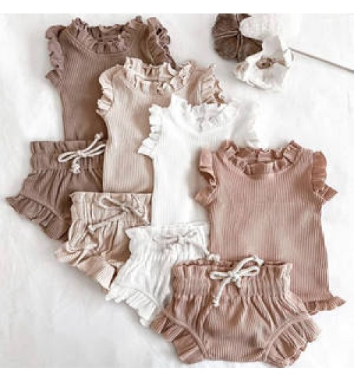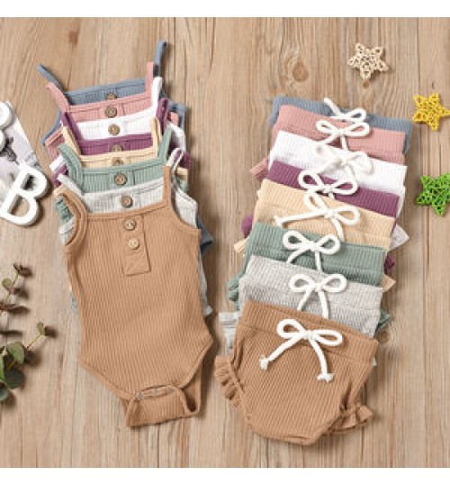 Summer baby cotton rib set 100% Cotton Short Sleeve Toddler Romper baby girl dress sets baby girl clothing sets summer