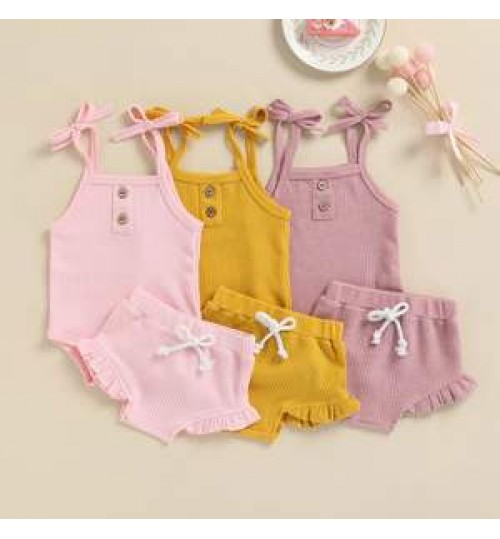 Product Name | Kids Baby Summer Clothes for Newborn Baby Boys Girls Solid Lace-up Knitted Backless Rompers+Drawstring Shorts Beach Outfits Sets |