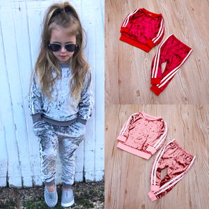 2022 Wholesale Casual Spring Autumn Winter 2 pieces Long Outfits Golden Velvet Girl Boy Children's Clothing Girls' Clothing Sets
