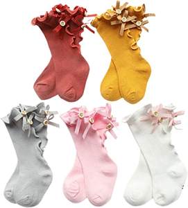2022 Hotsale Cotton Bow socks Newborn Baby Girls Knee High Socks Ruffled Toddler Long Socks
