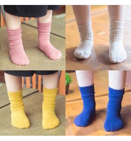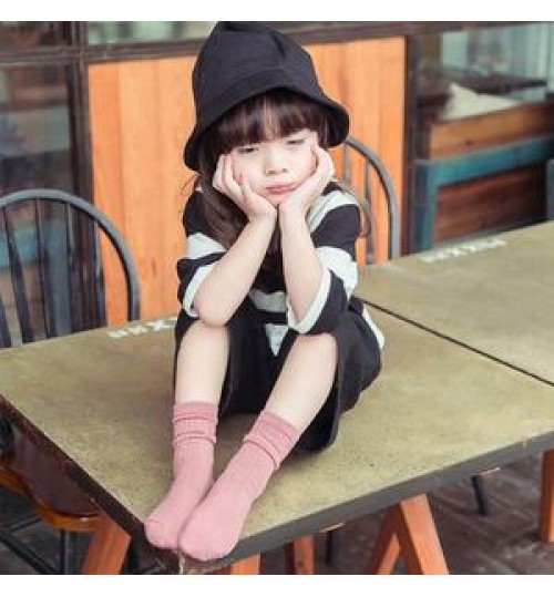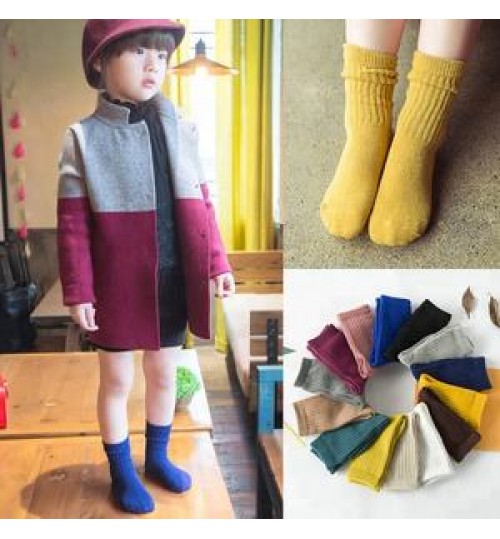 Winter Candy Color Stripe Organic Cotton Socks Kids Children Cute Tube Crew Socks