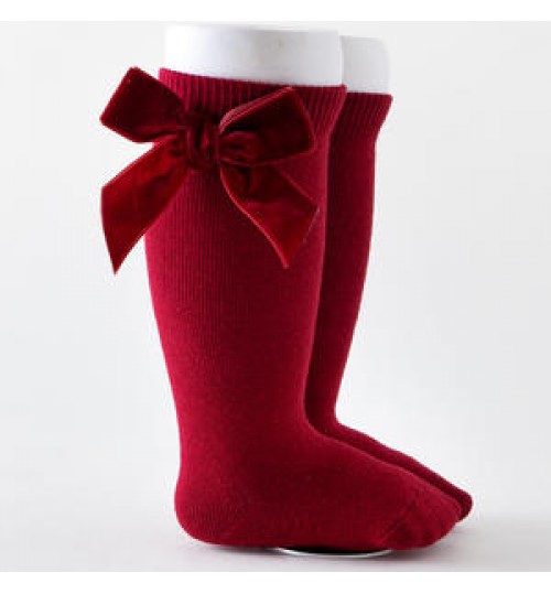New Arrival Children Spanish Style Cotton Long Socks Girls Velvet Big Bow Princess Knee High Kids Socks