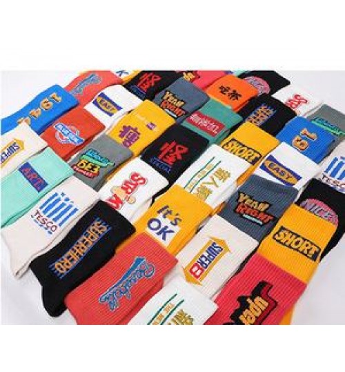 Free Mockup low MOQ cotton mens Custom socks colorful with character logo