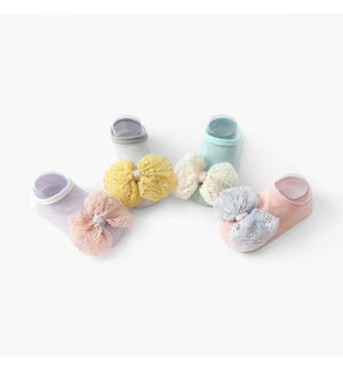 B328 12 pairsThin bow children's socks non-slip toddler socks