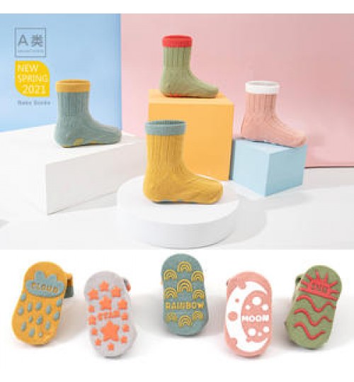2022 Cartoon 100% Cotton Baby Socks Non slip Children Toddler Floor Socks Double Needle Vertical Stripes Baby Socks