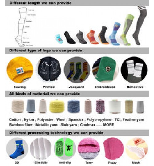 Sample Time and Bulk Time | Sample lead time: 5-7 workdays; Bulk Time: 15 days after sample confirm. Can arrange more machines to produce socks for you if you are in a hurry. | |||||||