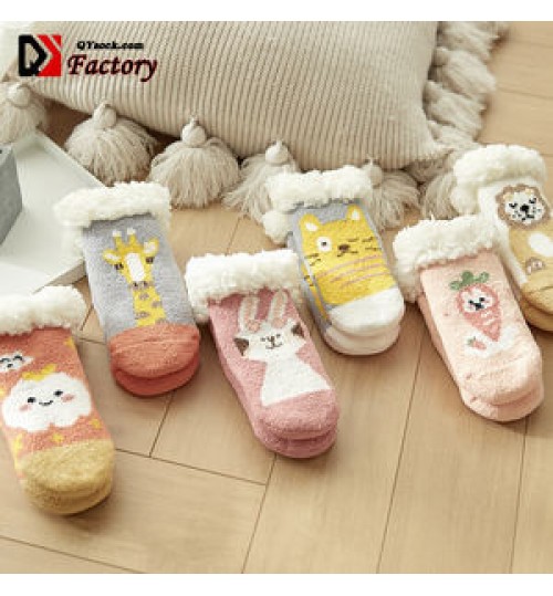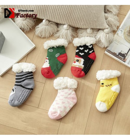 Winter Baby Cute Thicken Warm Kids Socks Newborn Toddlers Girls Boys Anti Slip Floor Socks Coral Fleece Christmas Thermal Socks