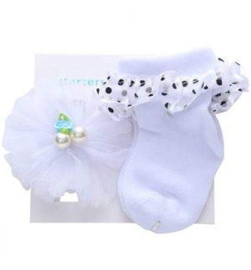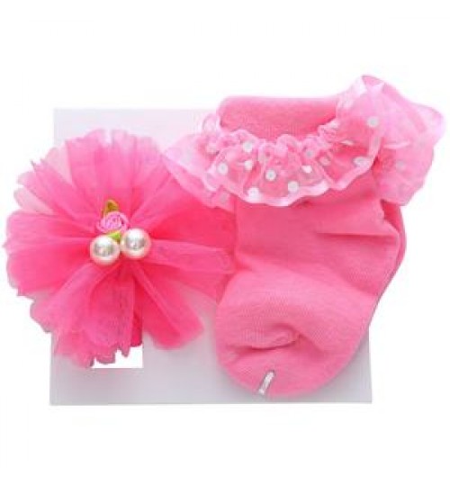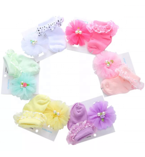 Newborn Baby Socks Lovely Lace Hair Bows Hairband Headband Stylish Cute Girl Toddler Socks and Hairband