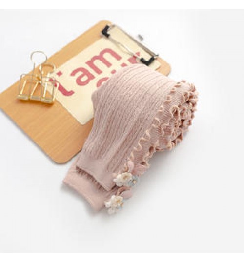Spring Autumn Double Needles Lace Both Sides Baby Toddler Bottomed Pantyhose Vertical Bar Ear Edge Nine Point Trousers Zhuji W