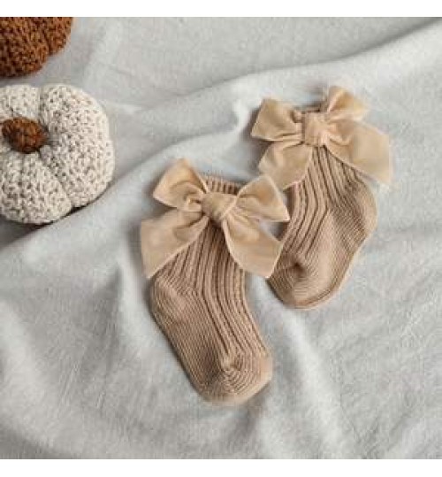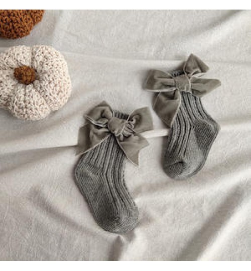 • 4201-1 Winter Baby Thick Knitted Girls Ankle Socks Big Bow Warm Cotton Socks Infant Toddlers Solid Color Socks