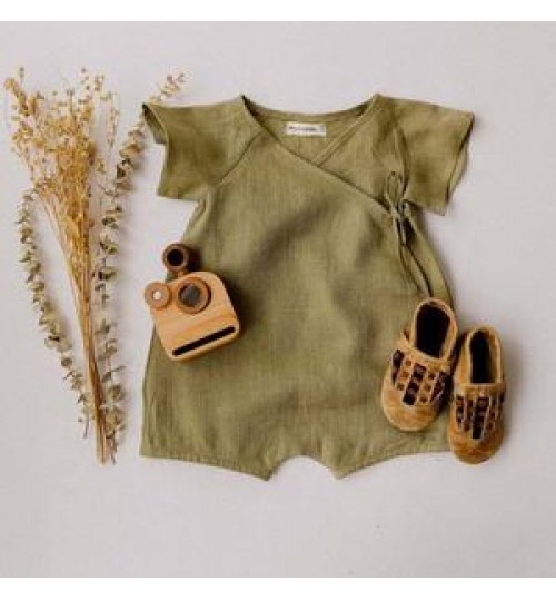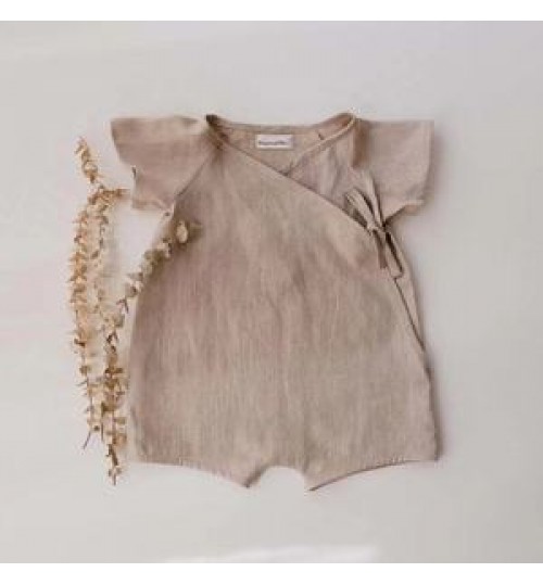 Australia US Newborn Bodysuits Short Sleeve Baby Linen Romper Straps Plain Baby Linen Jumpsuits