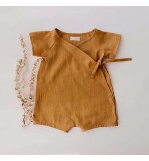 Free Sample Australia US Newborn Bodysuits Short Sleeve Baby Linen Romper Straps Plain Baby Linen Jumpsuits