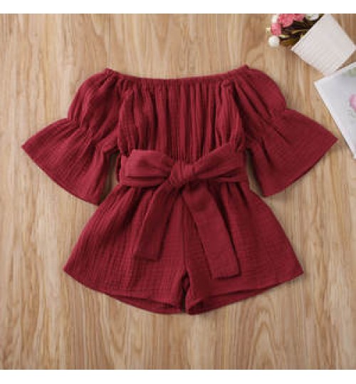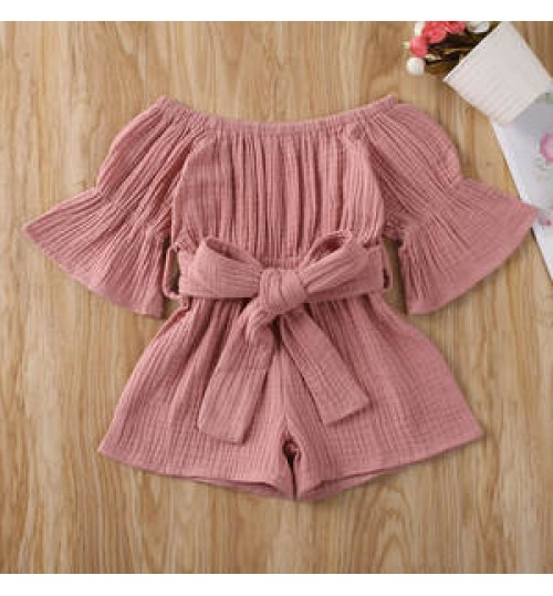 • MIOZING Infant Baby Girls Rompers Overalls 7 Colors Flare Sleeve Solid Jumpsuits Clothes