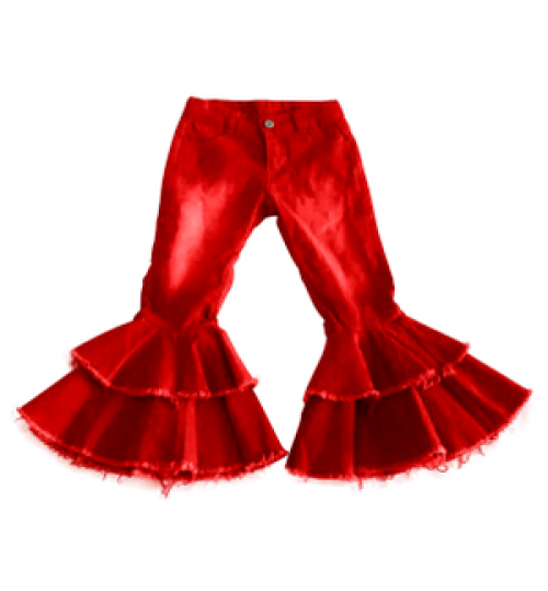 Fashion Baby Girls Casual Jeans Trousers Baby Toddler Denim Pants Kids Children Kids Bell-Bottoms Pants Wide Leg Ruffle Denims