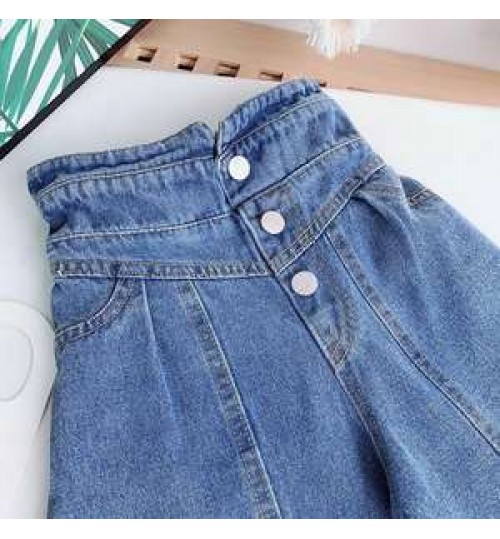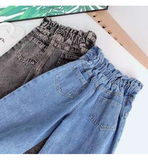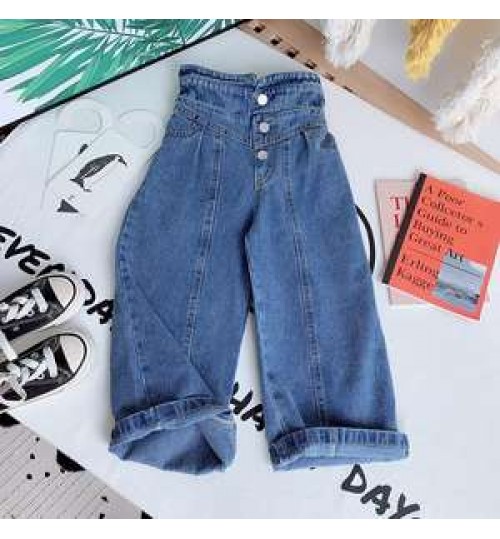 Custom Fashion Cotton Wide Leg Toddler Teen Child Clothes 2-14Y Denim Trousers High Waist Button Baby girls jeans pants
