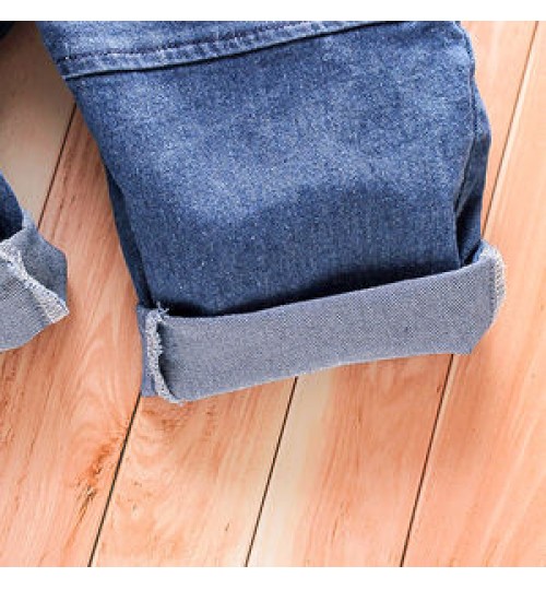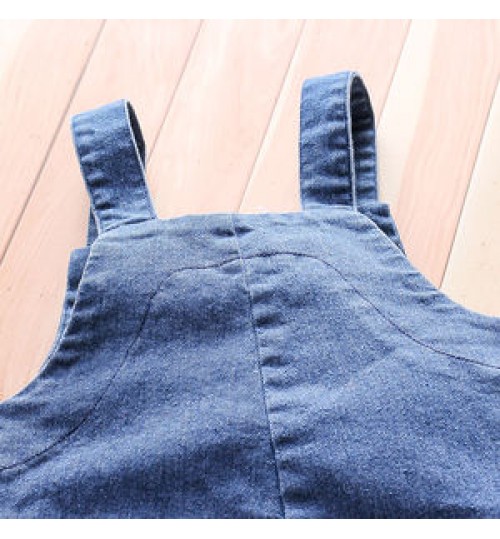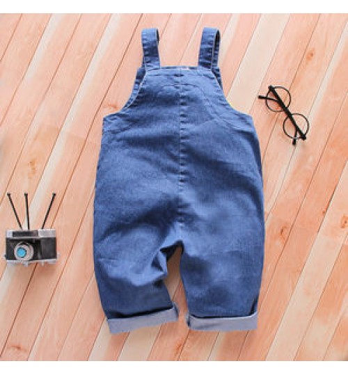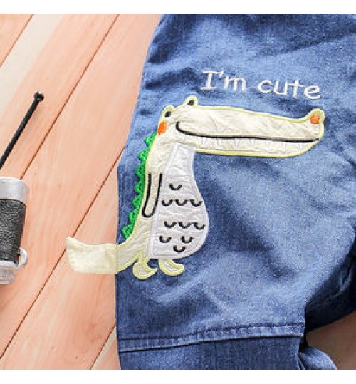 Baby Toddler Adjustable Blue Washed Slim Jeans Overalls With Cute Cartoon Crocodile Printing Suspender Trousers
