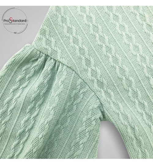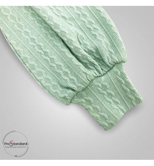 Details | 1. Mock Neck 2. Drop Puff Sleeves 3. Teardrop Closure 4. Snap Buttones on Crotch 5. Cable Knitted |