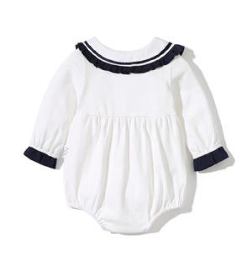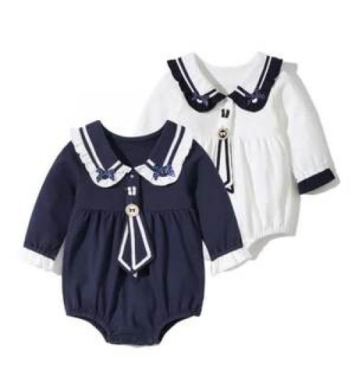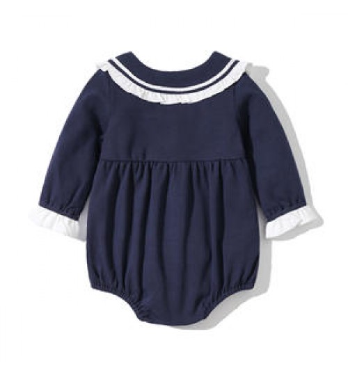 2022 New Long-Sleeved Little Girls Cutie Navy Style Spring Autumn Newborn Baby Kids Wear Romper Clothes