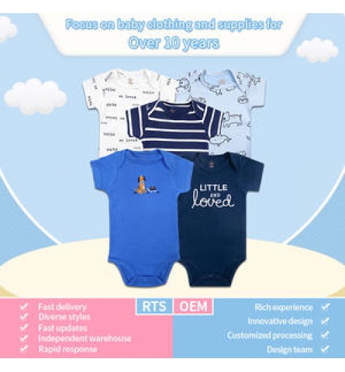 Each batch of 5 sets, each set contains 5 different styles of baby clothing.