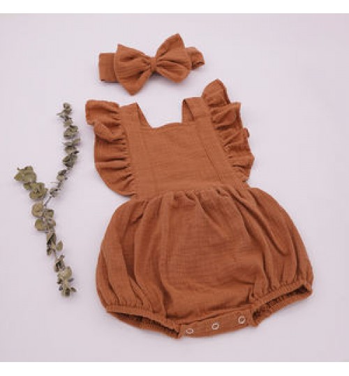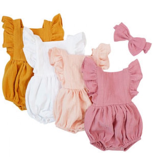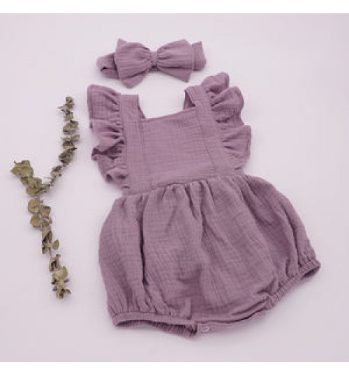 Newborn Organic Cotton Butterfly Short Sleeve New Multiple Colour Cute Casual Loose Baby Rompers With Bow Bandana