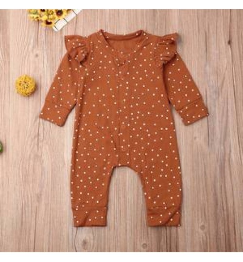 0-24M Baby Girl Clothes Newborn fly sleeved Polka Dots full print Romper Long Sleeve Floral Jumpsuit Playsuit Outfit Clothes