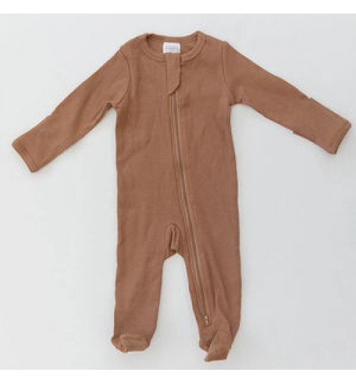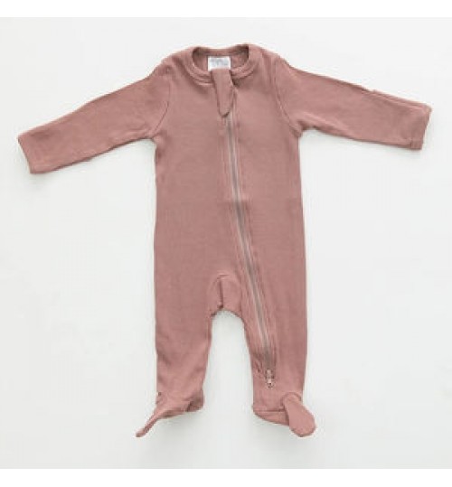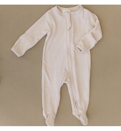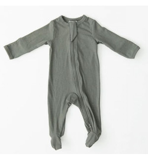 High Quality Grey Ribbed Footed One-piece Zipper 100% Organic Cotton Playsuit