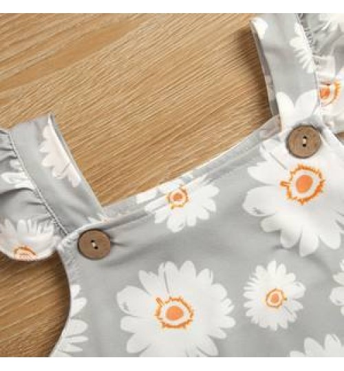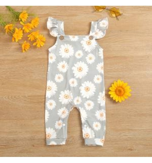 2022 Private Label Toddler Girl Summer Long Playsuit Cute Daisy Sunflower Print Flying Sleeves Baby Romper Bodysuit