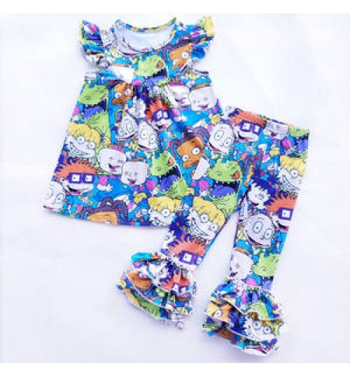Wholesale printed icing baby girls cotton ruffle kids boutique leggings pants