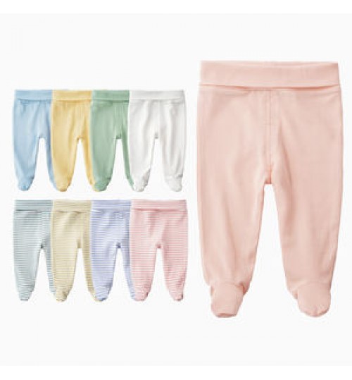 Spring autumn loose footie newborn organic cotton stripe solid color toddler high waist kids boy baby legging pants legging baby
