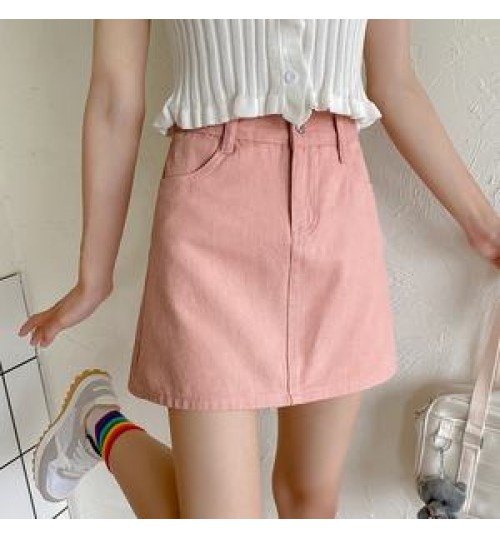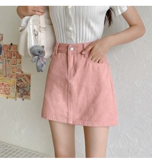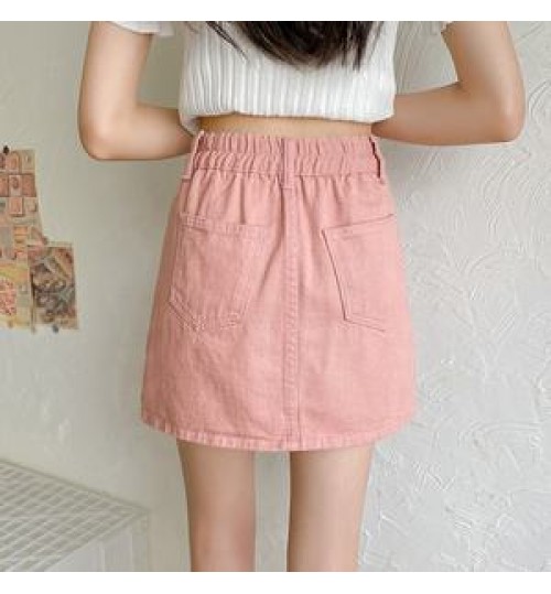 • Korean three color chic denim elastic waist jeans A-line skirt