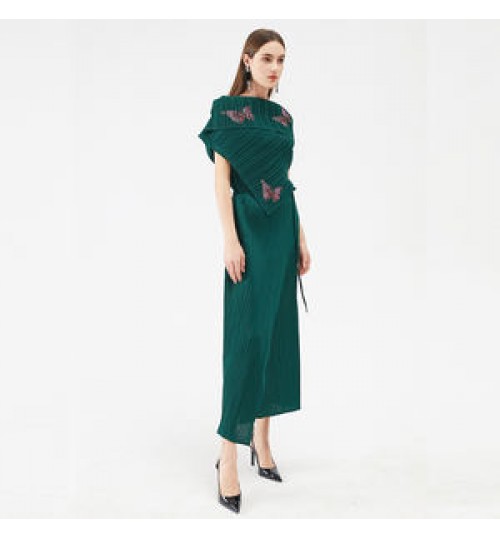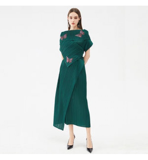 • 2021 best quality customized style pleated skirt casual personality diamond-studded butterfly dress Casual Dresses free size