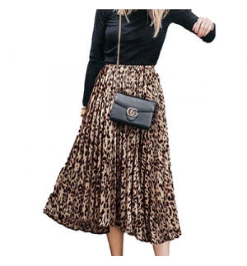 | Item name | Large Print Leopard Mid Length Pleated Elastic Waist Skirts |