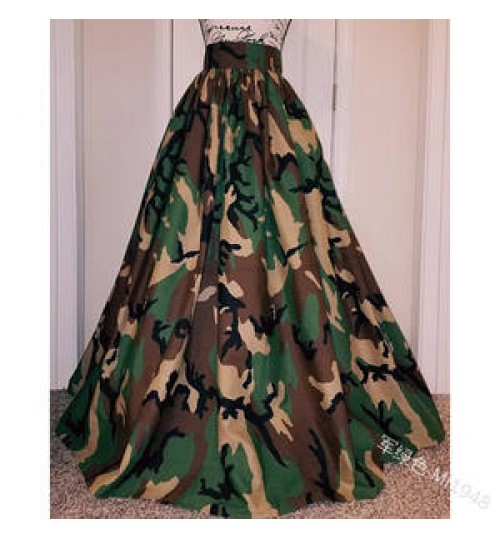 • 2022 Camouflage Plus Size Floor-Length Skirts Women Printed A Line Skirts Girls High Waist Long Skirts