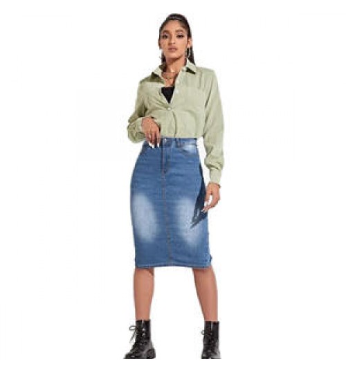 women's high waist jeans skirt women denim slit back midi denim maxi skirt plus size casual a-line woman denim skirt knee leng