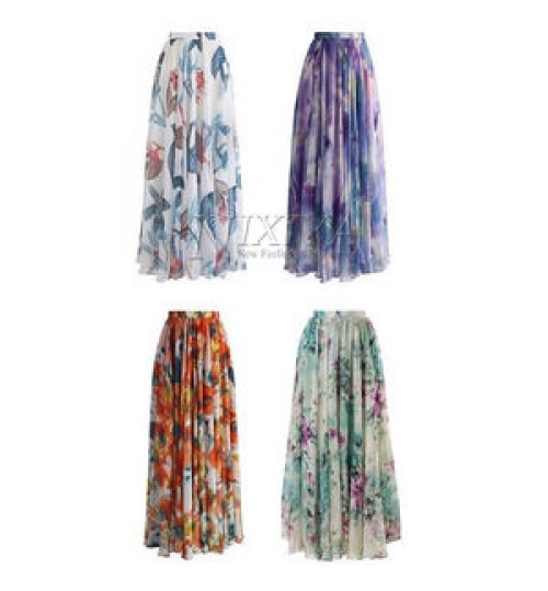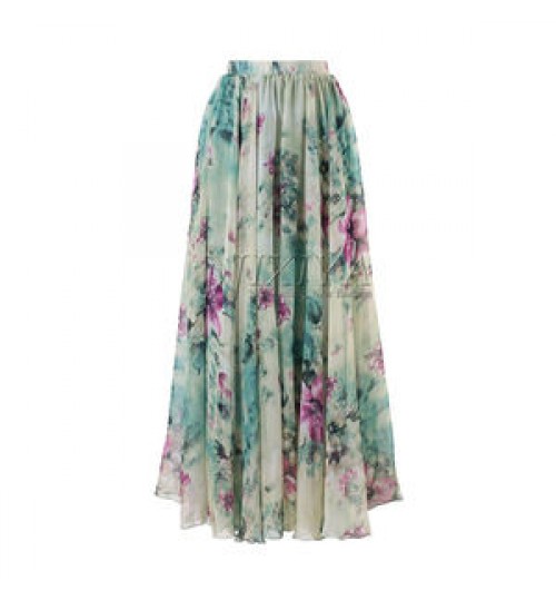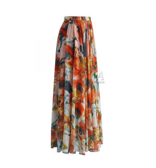 Elegant ladies Summer Skirt Hot Sale New fashion Skirt floral print Shrink long women skirts maxi