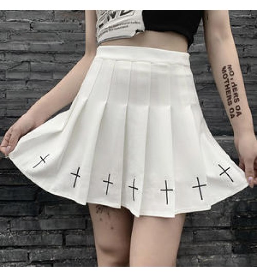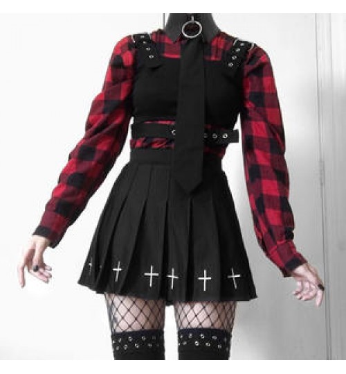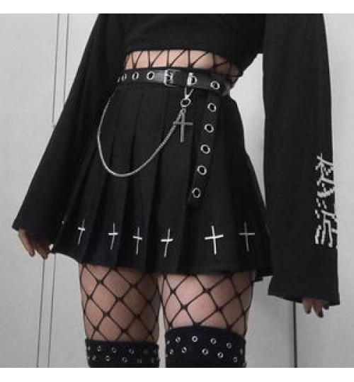 Y2K Dark Academy suit punk skirt functional wind a-word tactical half-length pleated skirt high-cold black cross mini skirt