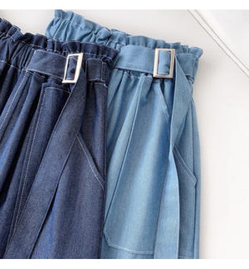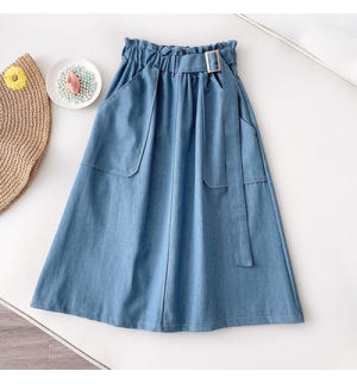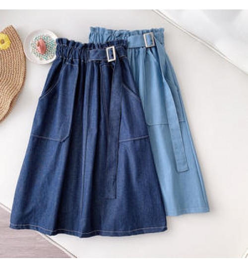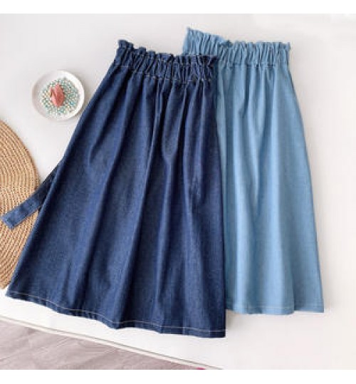 • Custom China Factory Wholesale Casual Elastic High Waist Midi Long Denim Skirts for Women Girls