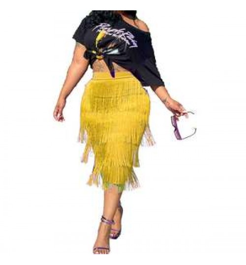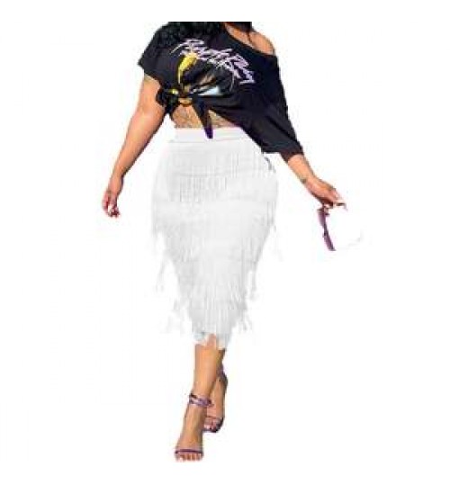 Tassel Women Black Skirts High Waist Streetwear Solid White Dress Summer Straight Casual skirts