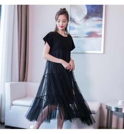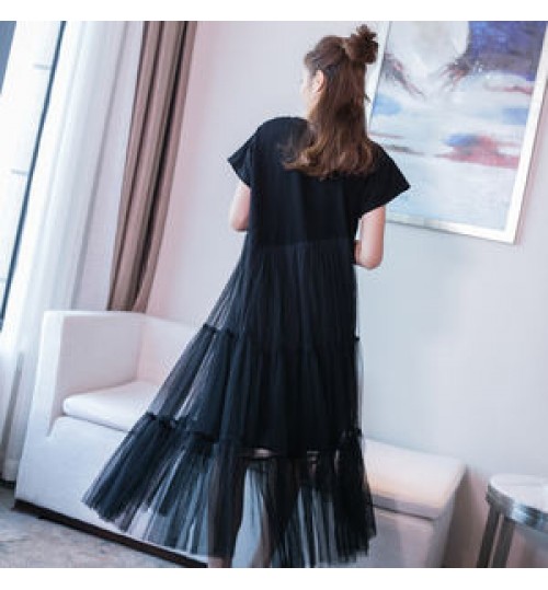 Large size XL 5XL dresses 2017 Summer New Cotton Split Joint Gauze Irregular Hem Loose lace Big Longuette mesh Dress Woman
