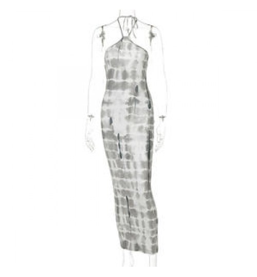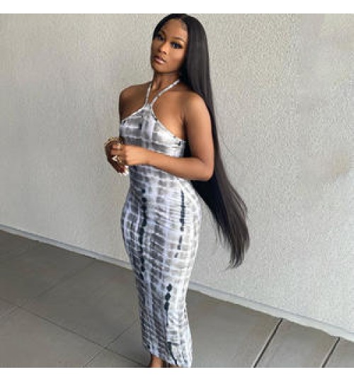 2022 Arrival Spring Printed Halter Lace Up Backless Hot Selling Dress Sexy Off Shoulder High-quality Women's Wear Longuette