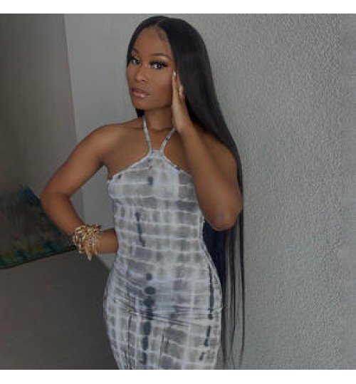 • 2022 Arrival Spring Printed Halter Lace Up Backless Hot Selling Dress Sexy Off Shoulder High-quality Women's Wear Longuette