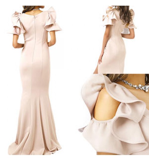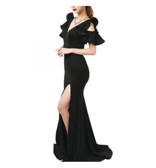 Open high fork long evening dress, sexy, gorgeous, high-end atmosphere. The lotus leaf sleeve design highlights the lovely and sexy evening dress.