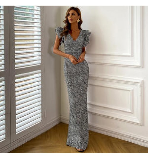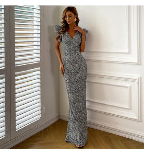 NOVANCE M01394 Dignified Pleated sleeves longuette elegant casual dresses bodycon summer maxi dress women ruffle dress fashion
